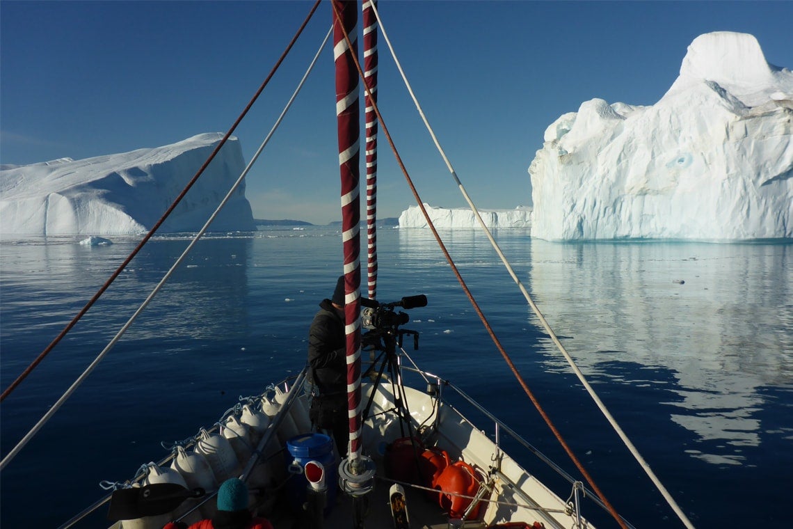 Following his Spitsbergen adventure, Halfar flew to Greenland, where he embarked on the next leg of the journey aboard the Vagabond, a 15-meter chartered sailboat that would be home for the next three weeks. Halfar shared cramped quarters with the Vagabond’s captain and his family and a four-person film crew from the German-French network ARTE, who are producing a documentary about Halfar’s research that will air in January 2017.