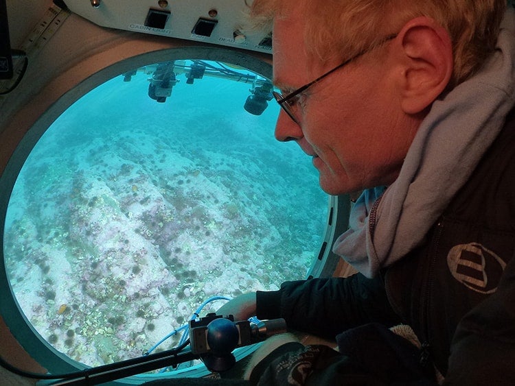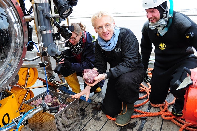 U of T researcher Jochen Halfar in a two-person submarine as he studies coralline algae specimens in the Arctic