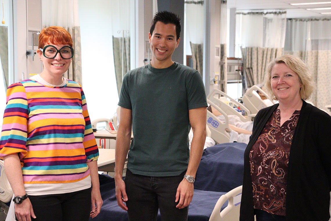Nursing student Richard Tang (centre) with Laura Fairley (left) and Erica Cambly, assistant professors in the Lawrence S. Bloomberg Faculty of Nursing (photo by Neal MacInnes)