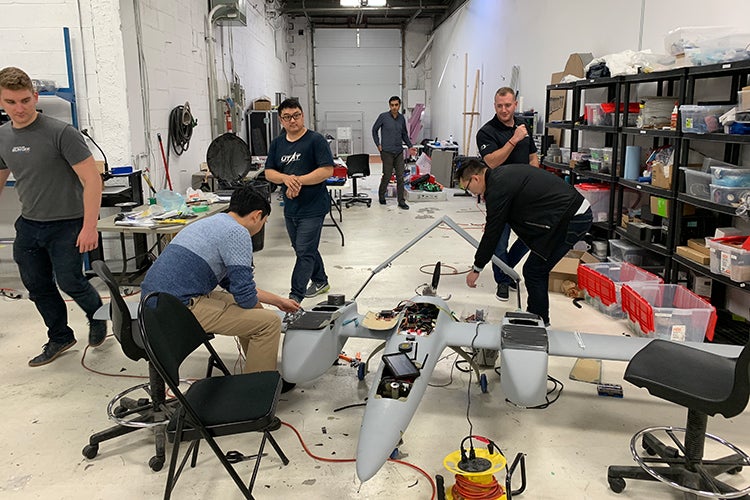But it was his co-op position at The Sky Guys, a local drone company, that set him on the path to his current project. Now the firm’s chief technology officer, Wang and a nine-person team aim to design an unpiloted aerial vehicle, or UAV, that combines the best features of both fixed-wing and multi-rotor drones.