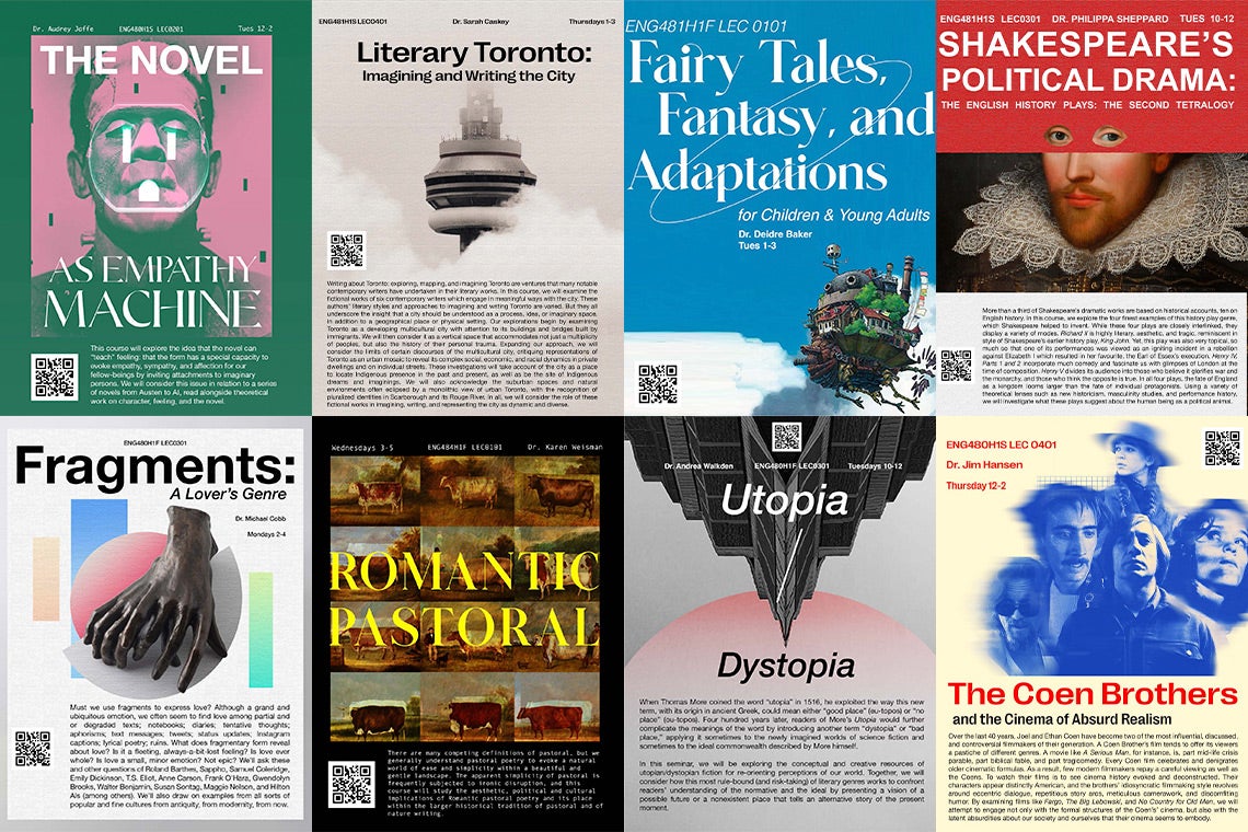 A PhD candidate in the Faculty of Arts & Science’s department of English, Chang is hoping to give students a better picture of what they’re going to learn by designing colourful posters that bring upper-year English course descriptions to life through powerful imagery.