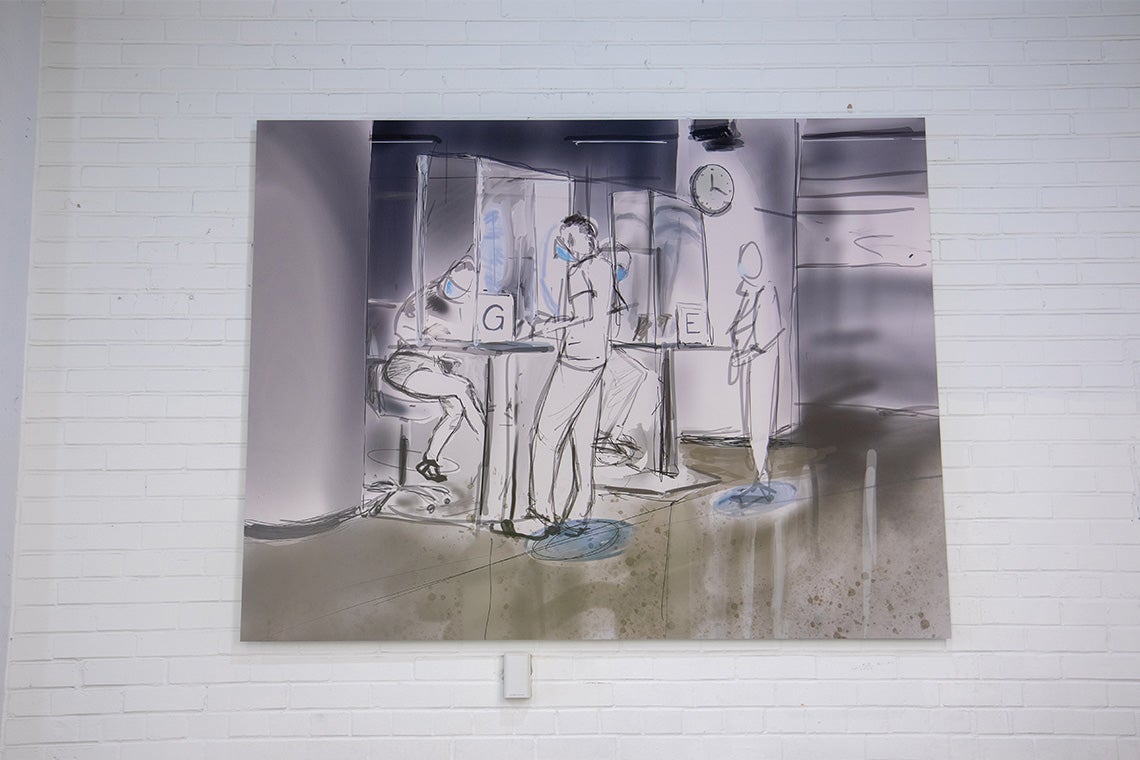 The next piece – Openers Check-in – is another of Ellwand’s early sketches, which he completed before he was tapped to be the clinic’s official artist-in-residence.