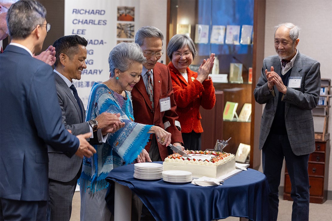 Vivienne Poy, former senator and former U of T chancellor, cuts a cake celebrating the 15th anniversary of U of T’s Richard Charles Lee Canada-Hong Kong Library (photo by Paul Terefenko)