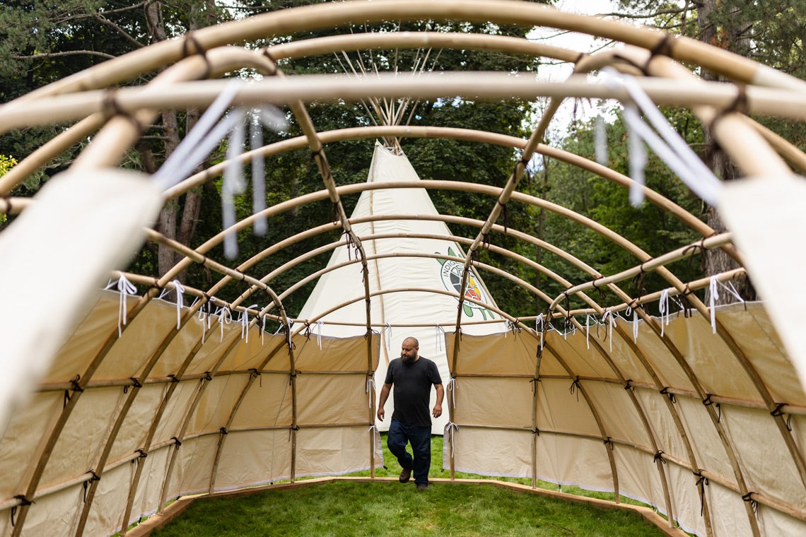 The Tipi, which is expected to remain on site for two years, will be used for ceremonies, programming, events and classes, while the larger lodge will be used as a teaching space.