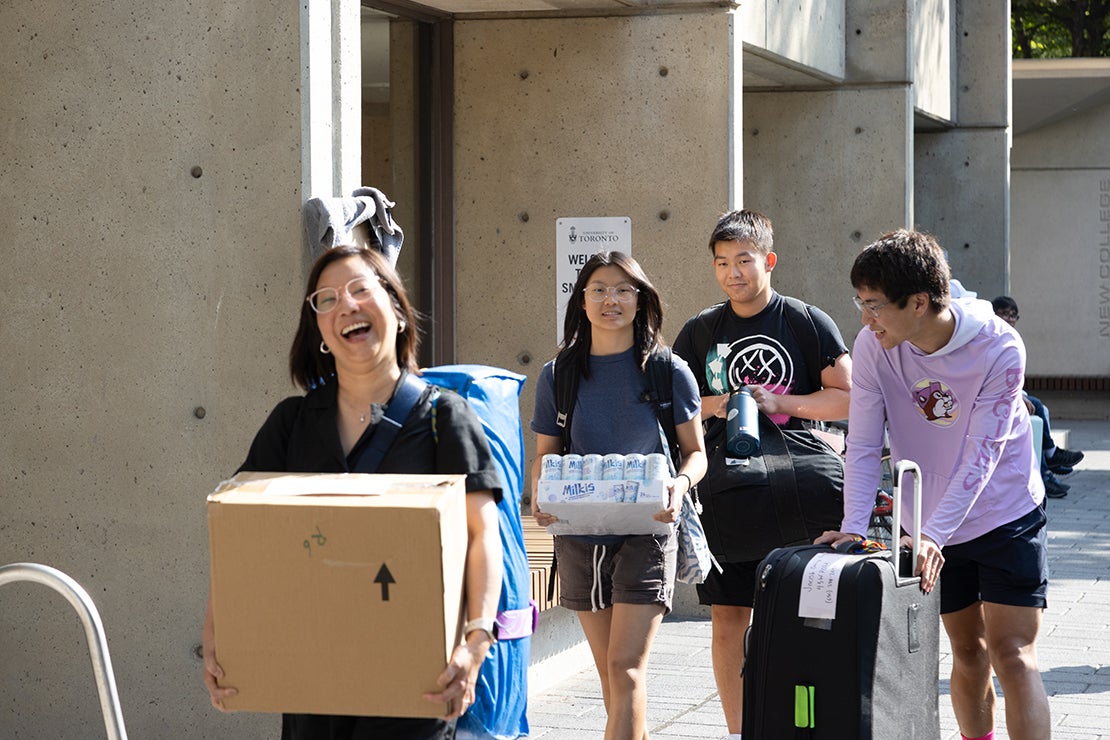 Jacob Domingo Chan, third from left, was among many first-year students who received a helping hand as they moved into residences on U of T's three campuses ahead of the new school year (photo by Polina Teif)