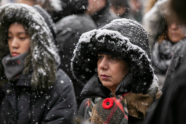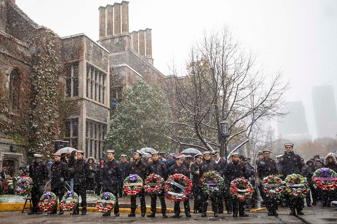Undeterred by freezing temperatures and the first major snowfall of the season, hundreds of people made time to attend Remembrance Day services across the University of Toronto’s three campuses on Monday.
