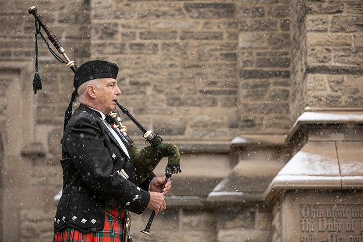 Piper Rory Sinclair plays the Lament during the Service of Remembrance on the St. George campus (photo by Nick Iwanyshyn)