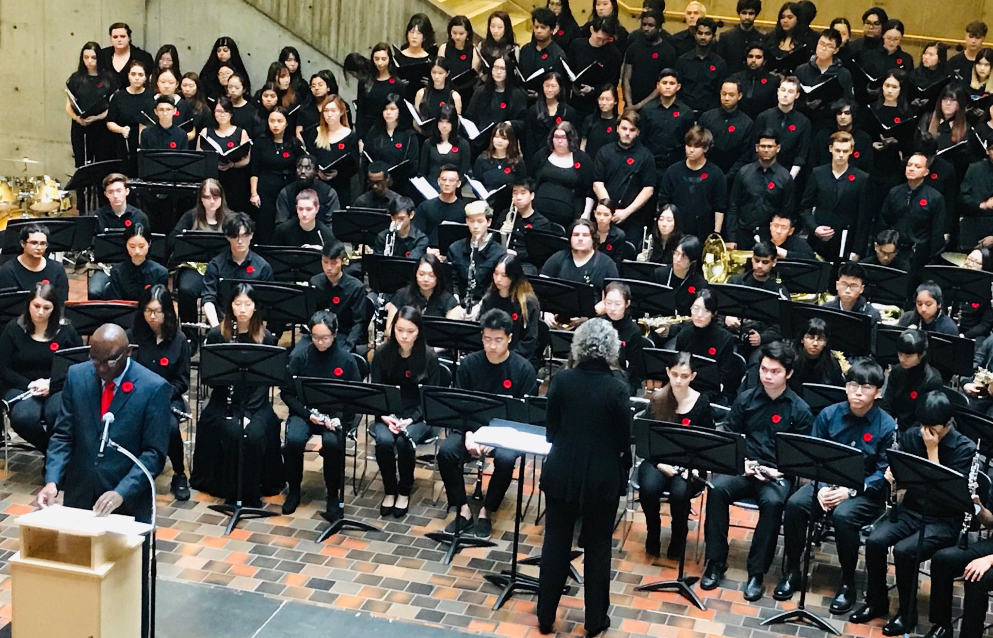 At the St. George campus, Soldiers’ Tower – constructed 95 years ago as a memorial to those who served during the First World War – served as the centrepiece of the annual Service of Remembrance.