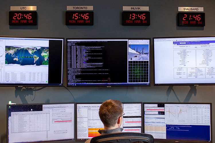 Inside the glass walls, an operator stares at a bank of six large computer screens that display data from Kepler’s tiny communications satellites as they streak overhead, from pole to pole, at an altitude of about 600 kilometres. Above his head are four clocks displaying the local times of Kepler’s ground-based antennae in Markham, Ont., Inuvik, N.W.T., and Svalbard, Norway, as well as co-ordinated universal time or UTC.