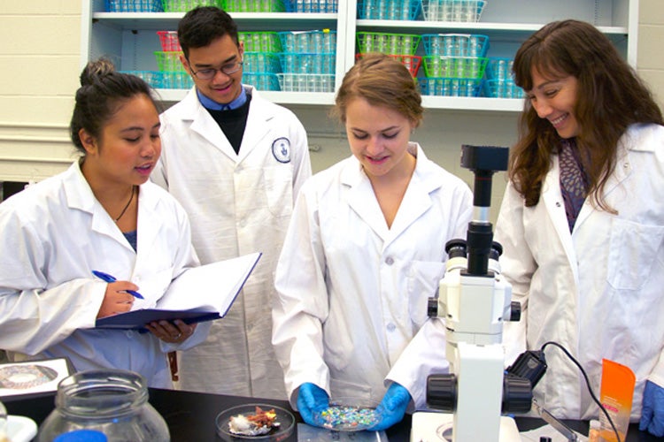 Assistant Professor Chelsea Rochman (right), an expert on water pollution from plastic contaminants, says the concentration of plastics in parts of the Great Lakes rivals those in the oceans