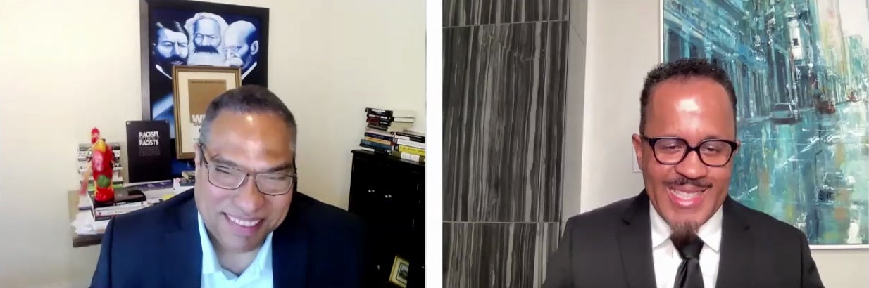 Professor Dexter Voisin, task force co-chair and dean of U of T’s Factor-Inwentash Faculty of Social Work, engaged in a conversation on anti-Black racism with Eduardo Bonilla-Silva, a professor of sociology at Duke University.