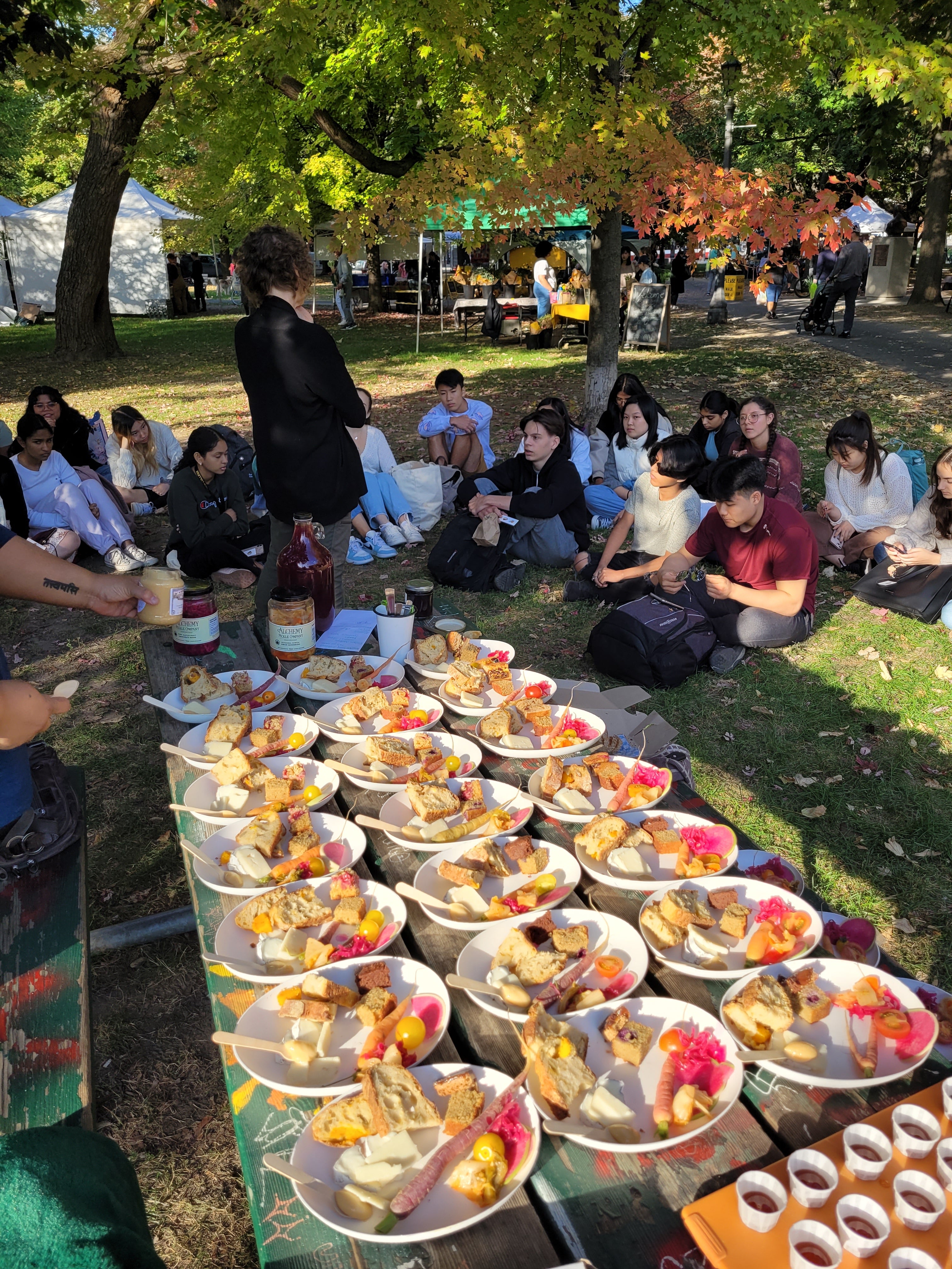 Andrea Most lectures her students before enjoying snacks from the Trinity Bellwoods Farmers' Market (photo by Sean McNeely)