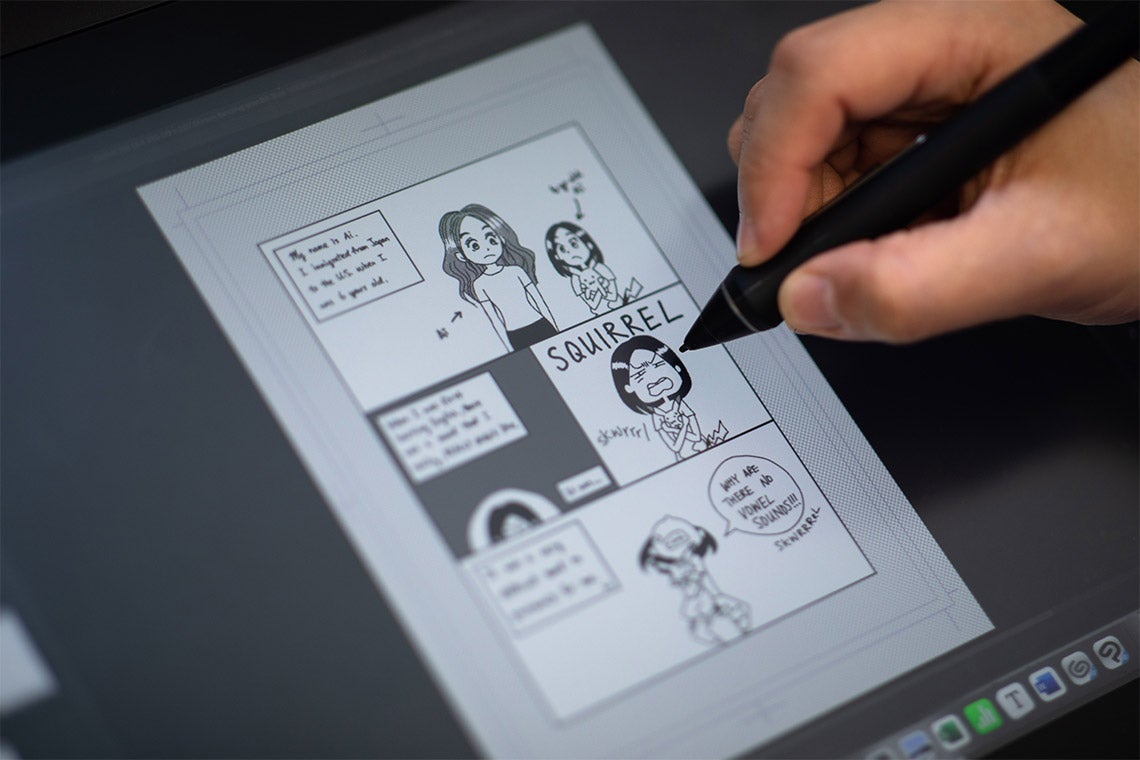 Taniguchi says digital comics give students an outlet to share their experiences with language (photo by Nick Iwanyshyn)