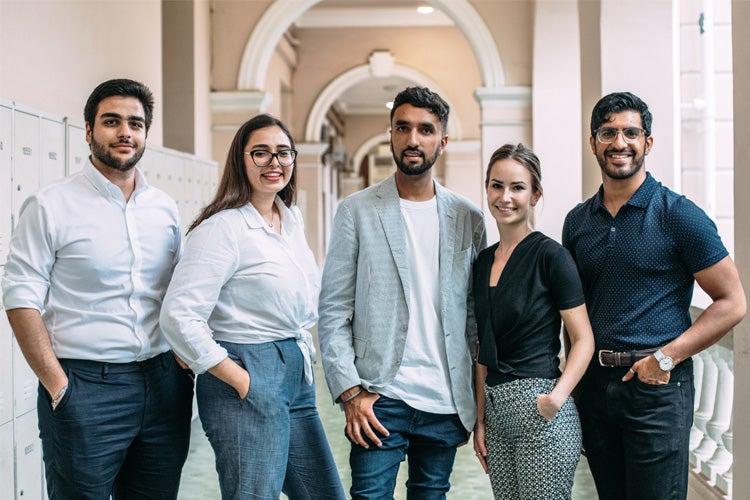 U of T's DVC working group pictured at the Hong Kong summit. (From left) George Ghabrial, Sara Bolourchian, Amitpal Singh, Milica Pavlovic and Aaqib Mahmood (photo by Alice Tse)
