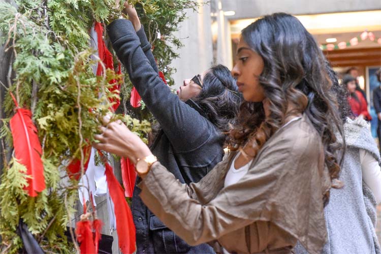 On Dec. 1, people at U of T Scarborough came together to remember victims of gender-based violence with red roses and with red feathers for missing and murdered Indigenous women.