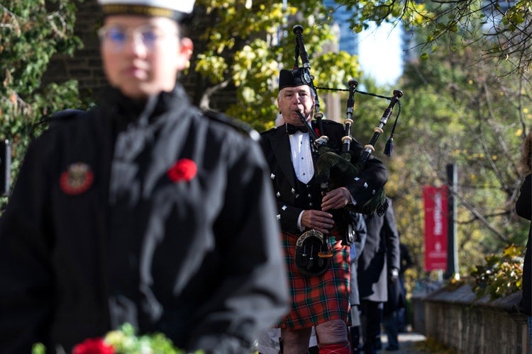 Bagpipes played at services across the University of Toronto on Friday as students, faculty, staff and alumni gathered with veterans to honour those who served in the First and Second World Wars, as well as other conflicts.