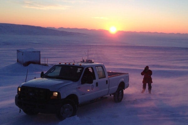 During the first week of my first PEARL campaign a couple years ago, we got stuck in the snow. There was a snow drift ahead on the road, and we thought the truck would plow through it. Waiting for the road to be cleared could take days, and we don’t ask the station for help unless it’s absolutely necessary. The snow drift was deeper and longer than expected, and the truck ended up plowing itself deep into it, but not through.