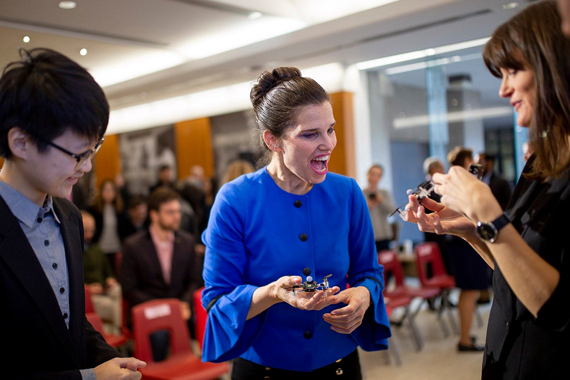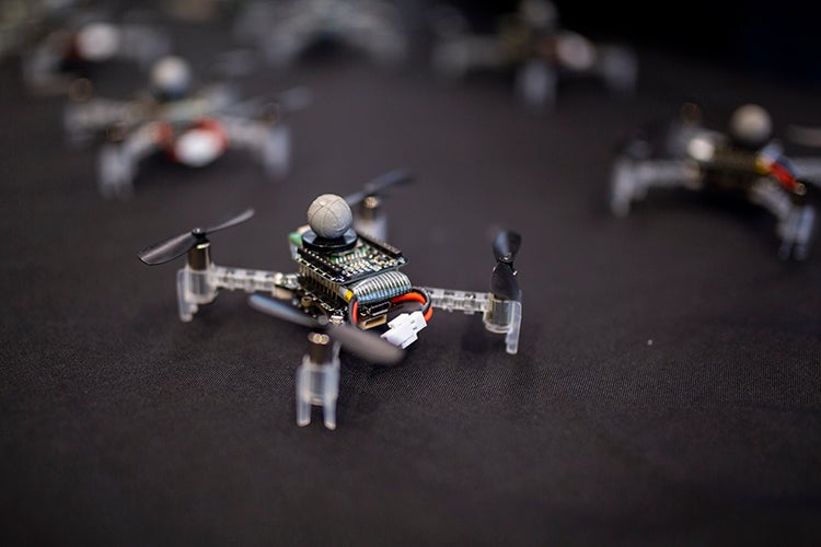 Schoellig will use the funding from her Canada Research Chair to tackle fundamental problems associated with machine learning and robotics control in devices like this miniature drone (photo by Nick Iwanyshyn)