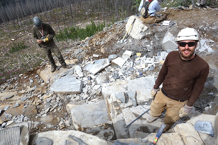 U of T alumnus Cédric Aria at the main Marble Canyon quarry site in Canada’s Kootenay National Park during the summer of 2014 (photo by Jean-Bernard Caron)
