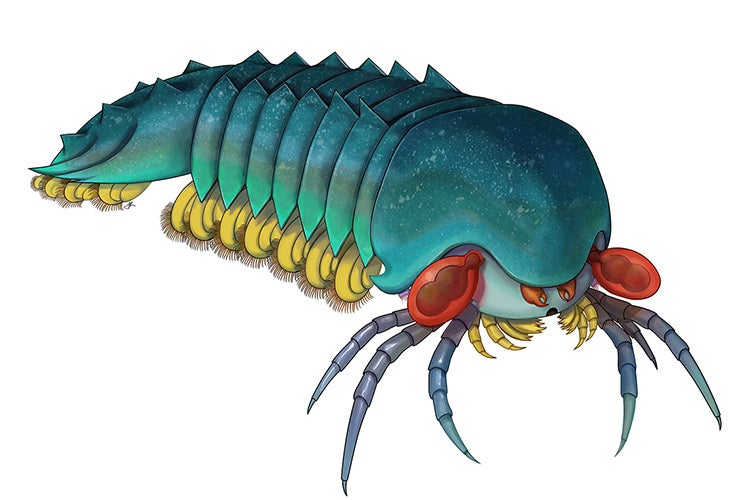 Mollisonia plenovenatrix would have been a fierce predator – for its size. As big as a thumb, the creature boasted a pair of large egg-shaped eyes and a “multi-tool head” with long walking legs, as well as numerous pairs of limbs that could altogether sense, grasp, crush and chew.