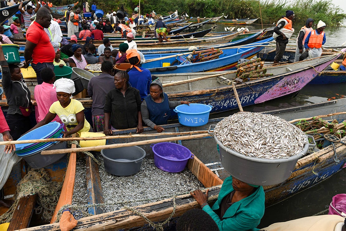 Fish vendors buy silver cyprinid, or omena, from fishermen in Western Kenya (photo by SIMON MAINA/AFP/Getty Images)