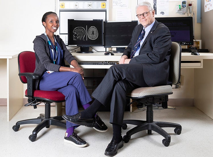 Dr. Grace Muthoni and Dr. James Rutka, U of T's chair of the department of surgery, who has supervised Prakash Fellowship recipients (photo by Matt Volpe)