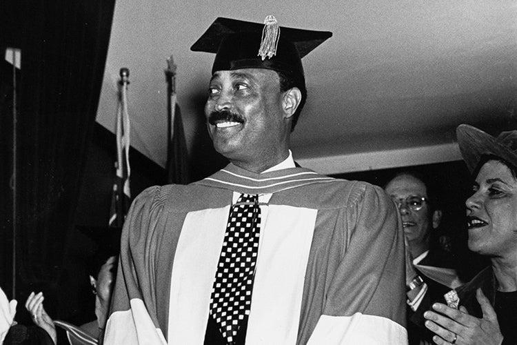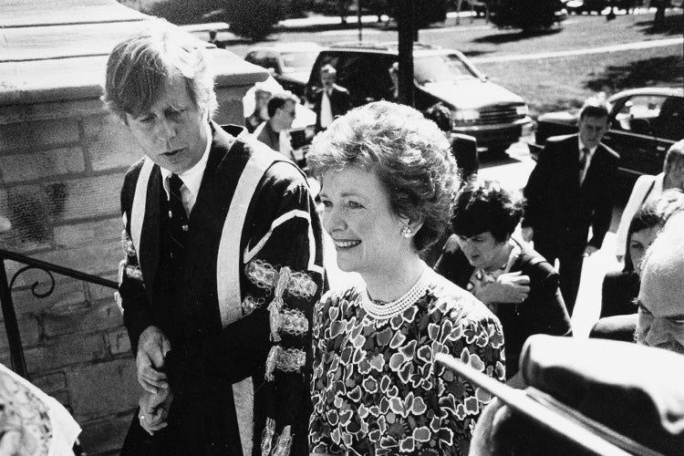 Mary Robinson, the first woman to become president of Ireland and hold the office of United Nations high commissioner for human rights, received a Doctor of Laws in the “Public Affairs category” during a special convocation ceremony in 1994.