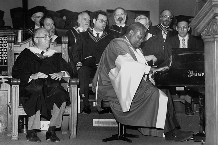Legendary jazz pianist Oscar Peterson, the multiple Grammy Award winner, was awarded a Doctor of Laws honorary degree in June 1985 in the “Arts – Music category.” The Montreal-born Peterson was a renowned soloist and his work also appears on over 200 albums by jazz greats like Ella Fitzgerald and Dizzy Gillespie. Louis Armstrong called Peterson “the man with four hands.” A U of T Mississauga residence hall was named in his honour.