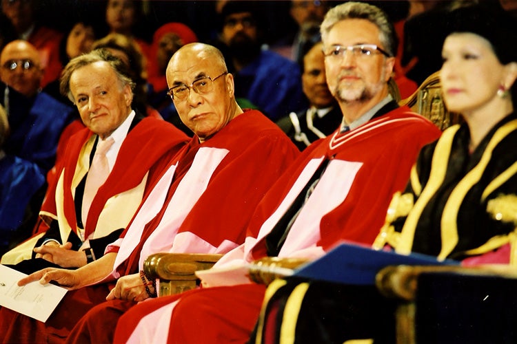 The 14th Dalai Lama, whose religious name is Tenzin Gyatso, was awarded a Doctor of Laws in the “Public Service” category on April 27, 2004. He received the 1989 Nobel Peace Prize for heading non-violent opposition to China's occupation of Tibet.