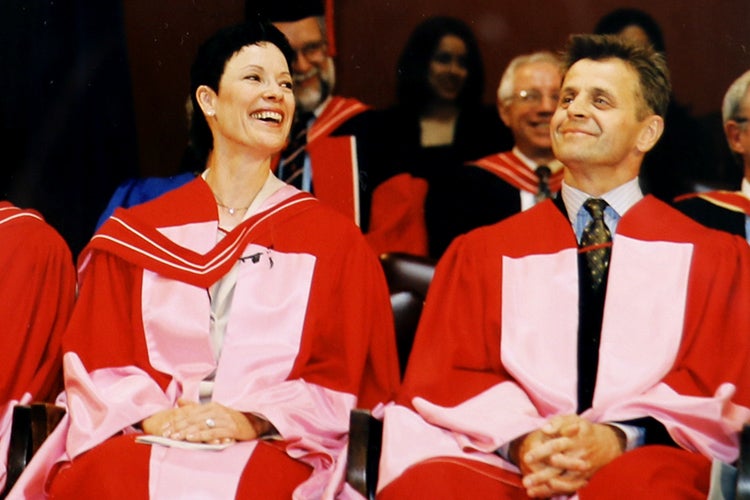 In June 1999, ballet icon and U of T honorary degree holder Karen Kain was on hand to see fellow dancer Mikhail Baryshnikov receive his Doctor of Laws in the “Arts – Dance” category. Kain, one of Canada’s most renowned dancers, was awarded a Doctor of Laws in 1993. Baryshnikov is one of the most celebrated male ballet dancers in history.