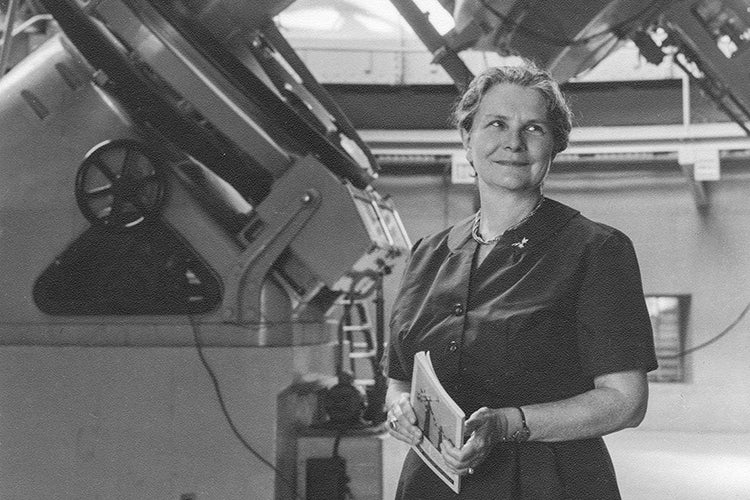 In 1977, astronomer Helen Sawyer Hogg, known internationally for her research on globular star clusters, received an honorary degree, a Doctor of Science in the “Academic Disciplines and Professions – Astronomy” category. The honour coincided with the sesquicentennial of the University of Toronto. Here she is pictured beside the David Dunlap optical telescope in the early 1960s.