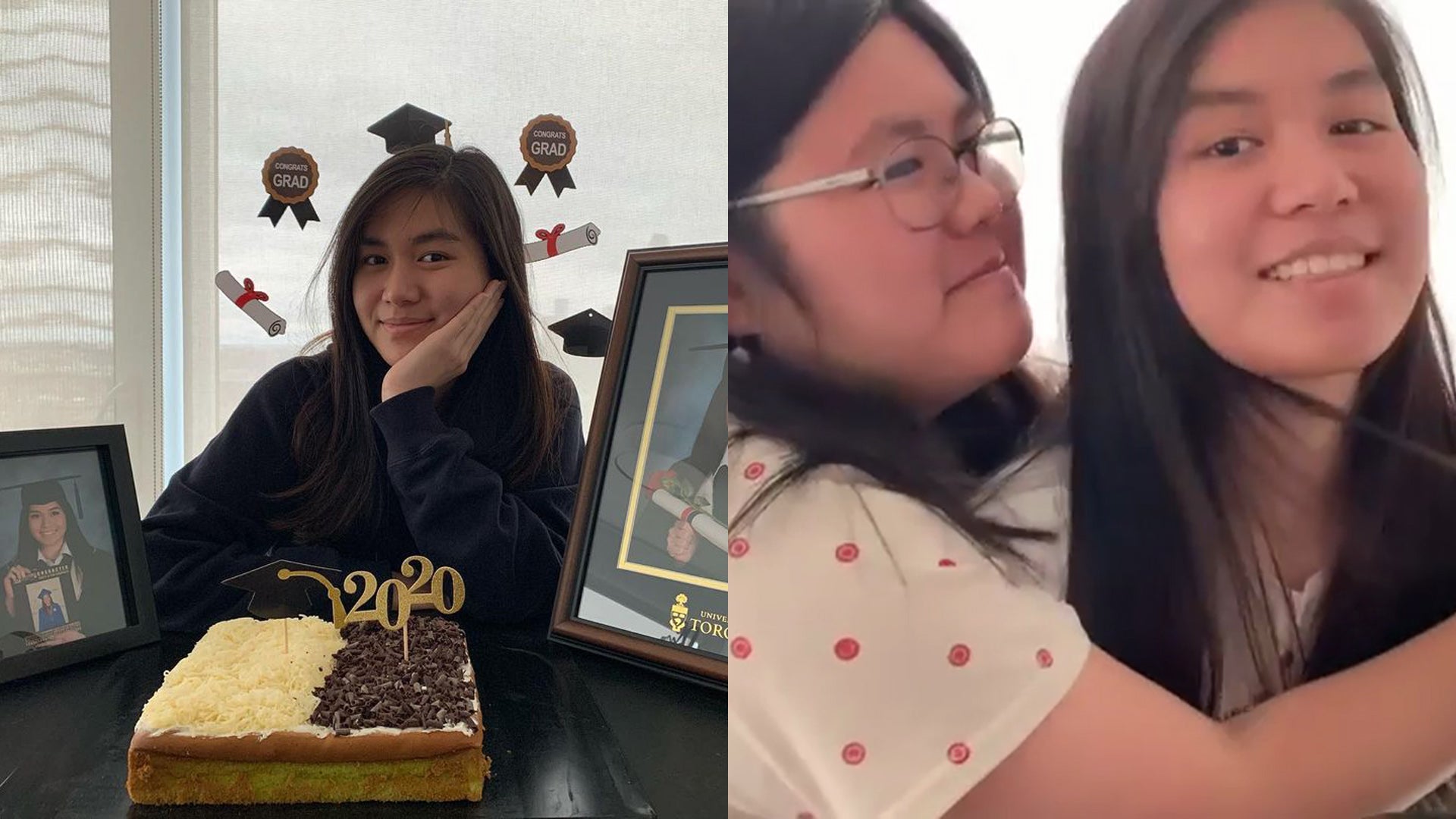 Caitlin Tejowinoto, a member of St. Michael’s College, appeared in a series of photos and a short video on Instagram that showed her watching the virtual event with family and a large cake, decorated for convocation. In the video, a finger points excitedly at a laptop as Tejowinoto’s name is about to crawl across the screen. Next comes clapping, grins and someone exclaiming: “Yay! High distinction!”