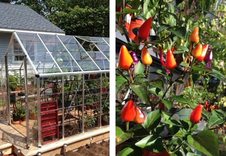 Jack McCrossin's peppers (right) and the greenhouse (left) in New Brunswick (photo courtesy of Jack McCrossin)