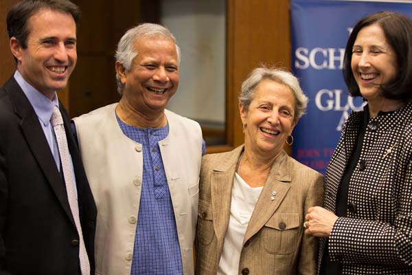 His talk at the Munk School wasn’t his first visit to U of T, as Munk School Director Janice Stein pointed out – the University awarded Yunus an honourary degree in 1995 for his work with microcredit and the Grameen Bank.