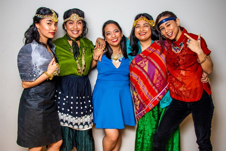 The cast of Tita Jokes, including U of T's Belinda Corpuz (left), Ellie Posadas, Maricris Rivera, Alia Rasul, Isabel Kanaan (photo by Tyra Sweet)
