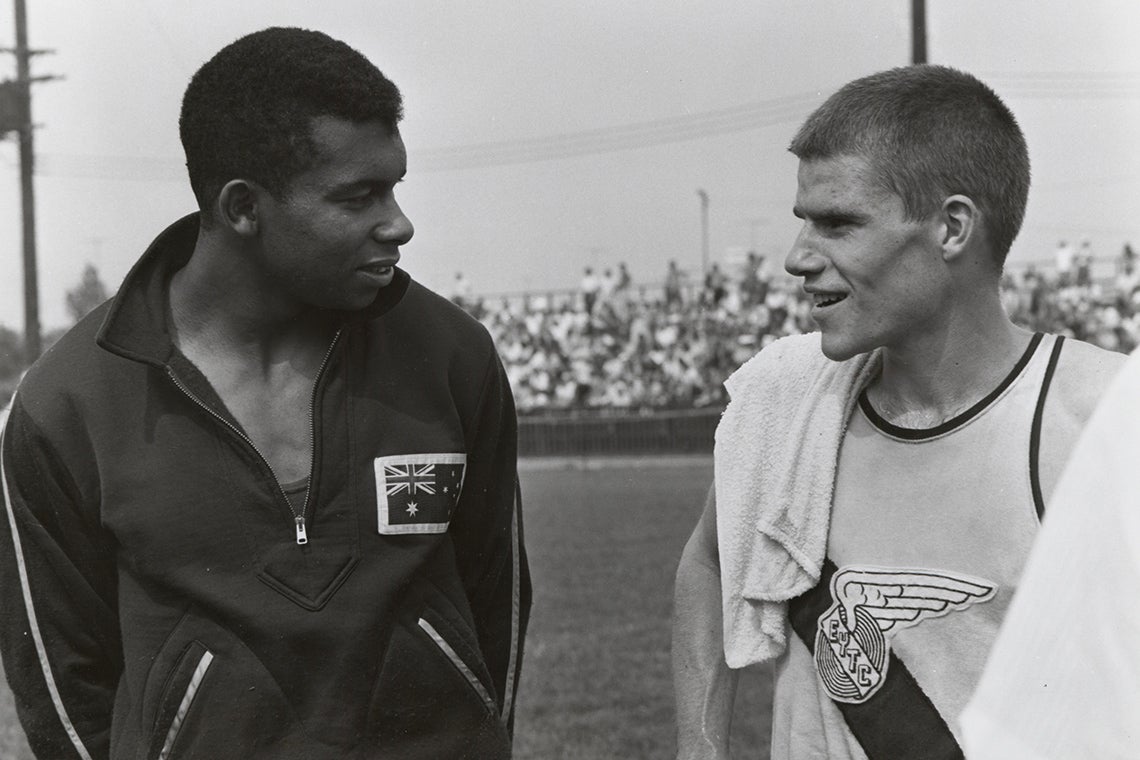 Harry Jerome (left) and Bruce Kidd (right) and at British Empire Game Trials in East York, August 1962 (photo by Mihkel Turk)