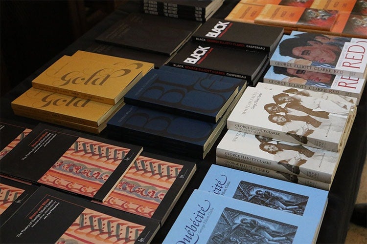 U of T Bookstore brought a gorgeous display of books by featured conference authors including Lee Maracle, George Elliott Clarke and Smaro Kamboureli (photo by Hannah James)