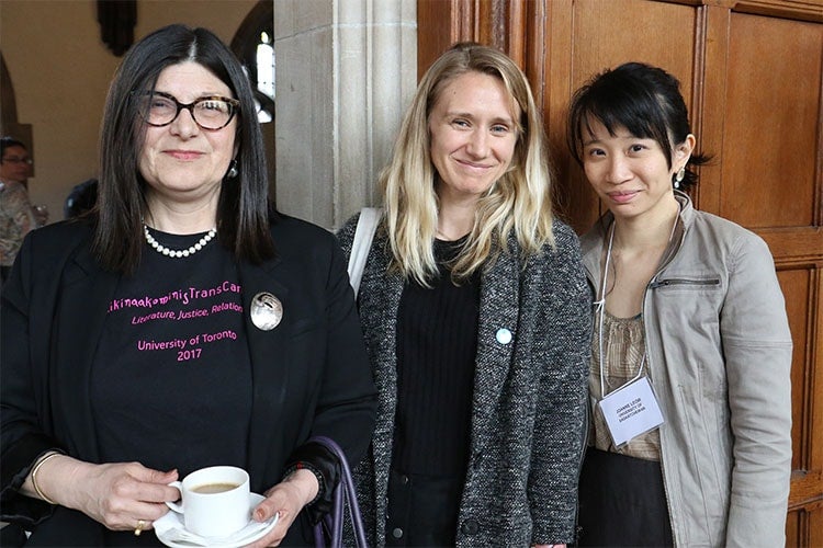 Smaro Kamboureli and graduate students, Evangeline Holtz from U of T and Joanne Leow from the University of Saskatchewan (photo by Hannah James)