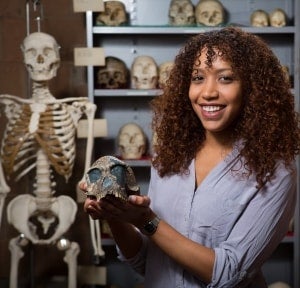 It was a childhood fascination with dinosaurs and the human body that led her to her current work. “They mixed in my 10-year-old mind,” she says. “In my second year of university, I found my interest in human evolution and how we got to where we are today.”