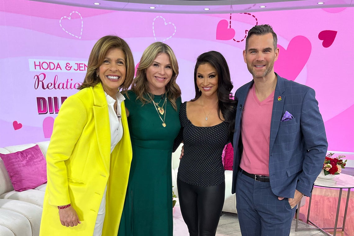 Jessica O’Reilly and her partner Brandon Ware appear on the Today Show with hosts Hoda Kotb and Jenna Bush Hager.