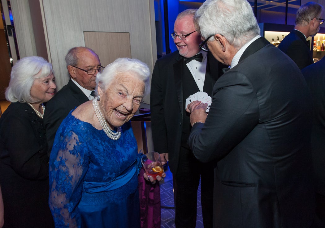 Hazel McCallion celebrates at U of T Mississauga's 50th anniversary gala in 2017 (photo by Lisa Sakulensky)
