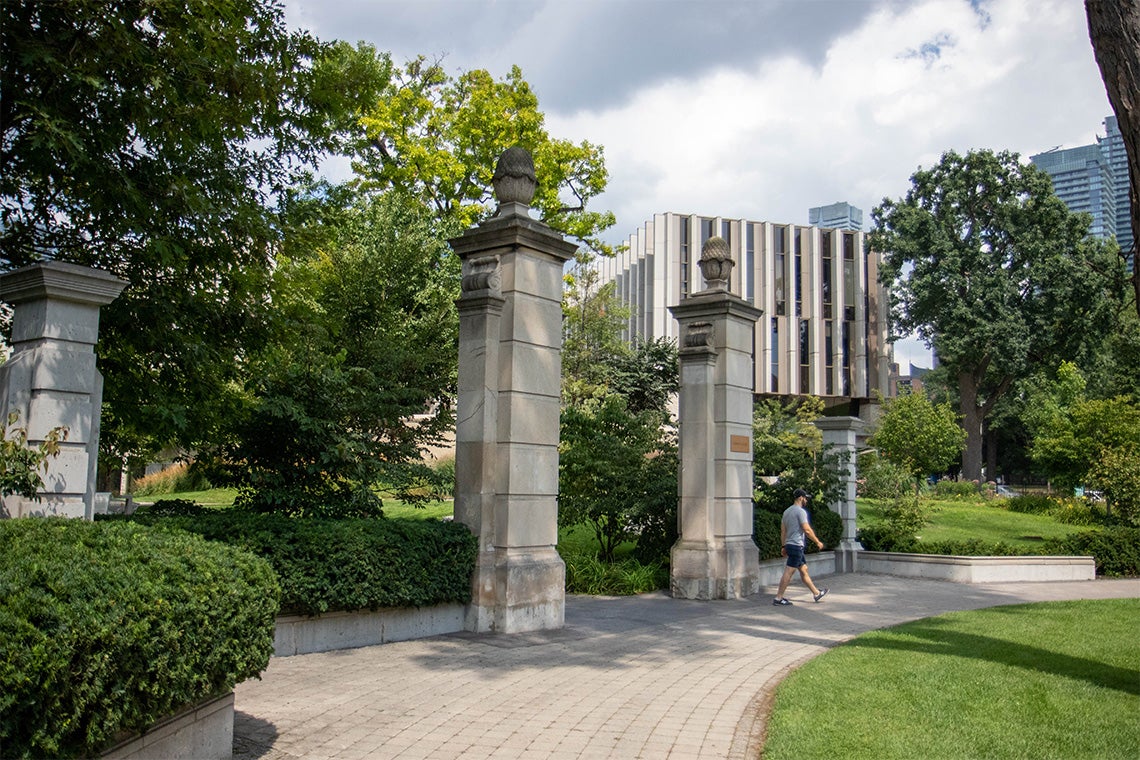 The Bennett Gates mark the southern end of Philosopher’s Walk, a meandering pathway that traces what was once Taddle Creek (photo by David Lee)