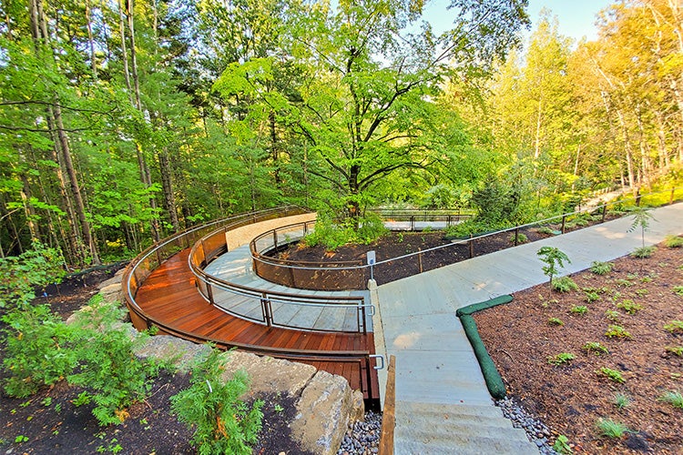 The Valley Land Trail was inaugurated just three years ago and has fast become a favourite destination for nature-lovers and photographers at U of T Scarborough. This 500-metre-trail connects the campus to the Highland Creek Ravine and boasts several lookout points with accessible seating.