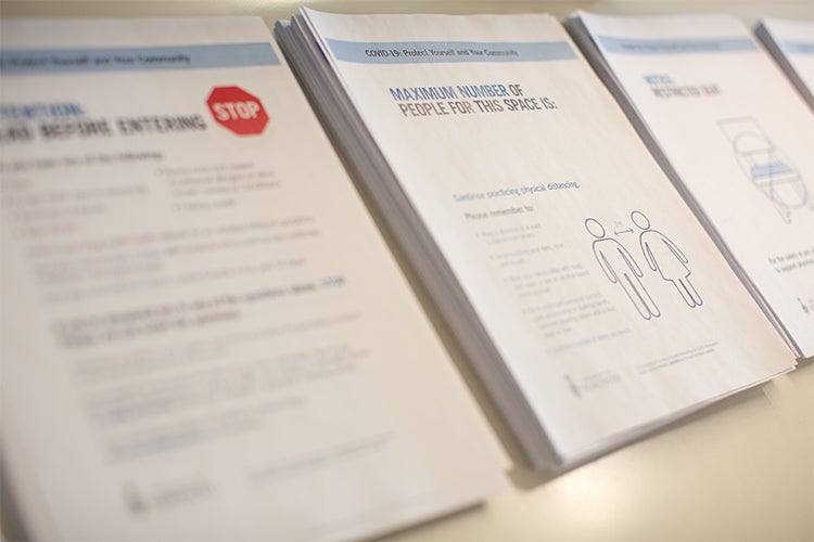 Starting this fall, be on the lookout for signage across campus that encourages and instructs everyone to practise physical distancing and proper hand hygiene.