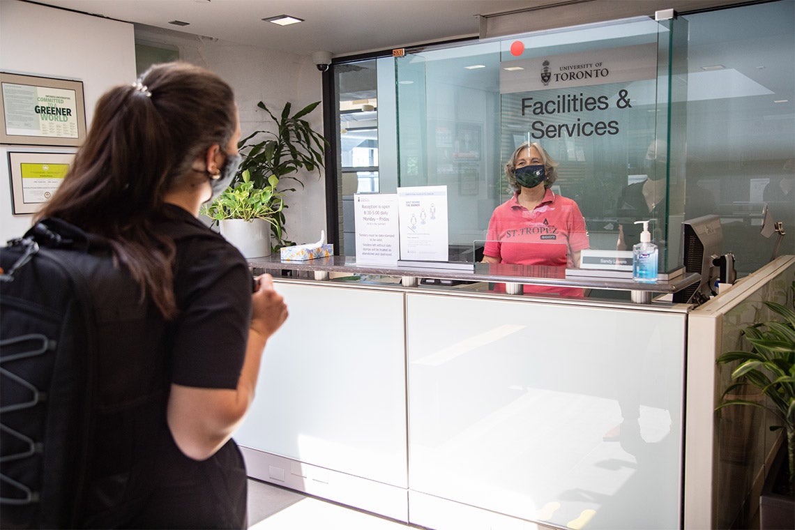 In busy areas where maintaining a two-metre distance from others isn’t possible, or is challenging, the university will assess and install where appropriate protective measures such as Plexiglass barriers and sneeze guards. Gina Trubiani, U of T’s director of occupational health and safety-EHS, says the measures may be set up in high-traffic areas such as campus clinic settings, the TCard office and other places where many people could come into close contact.