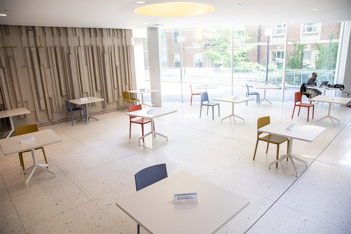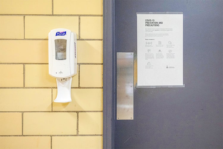 As the world continues to grapple with COVID-19, new and returning students will see signs promoting good hand hygiene and other safe practices across U of T’s three campuses, as well as new sanitizer dispensers. To encourage physical distancing, students, faculty, librarians and staff will also encounter re-arranged classrooms, shared offices, libraries, teaching labs and other spaces.