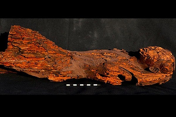 The wooden statue is one of very few existing royal wooden statues, and may represent the female king Hatshepsut. She was often portrayed as male in stone because the Egyptian pharaoh was understood to be son of the god Amon-Re (she was also known to dress as a man for the role). But this statue has a smaller waist and delicate jawline, acknowledging these aspects of her feminine physique.
