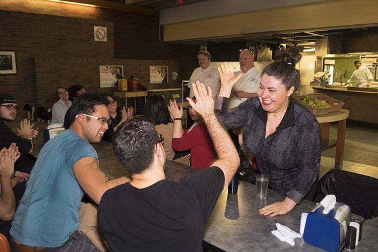The students who were chosen to be part of U of T's Iron Chef team celebrated after the announcement was made (photo by Geoffrey Vendeville)
