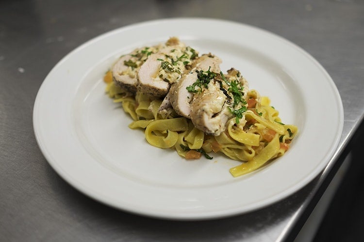 Stuffed chicken with fettuccine. The chefs behind this dish didn't make the cut for the U of T Iron Chef team this year (photo by Geoffrey Vendeville)