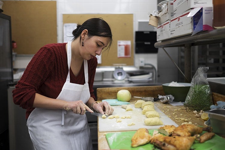 Burce Isik who studies genetics, biotechnology, and molecular biology, makes gnocchi (photo by Geoffrey Vendeville)